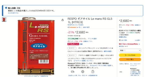 RESPO Le mans RS Gear L・S・D80W-120 Oil