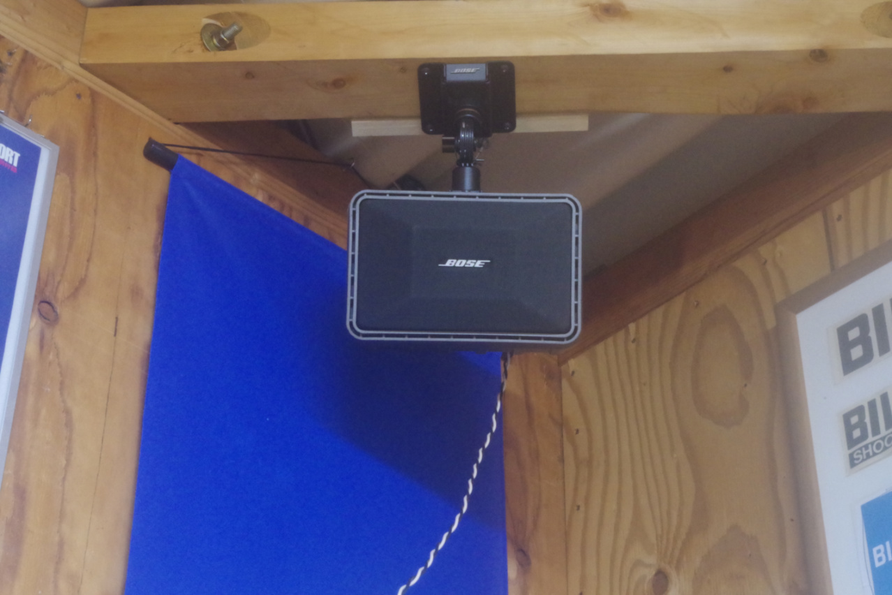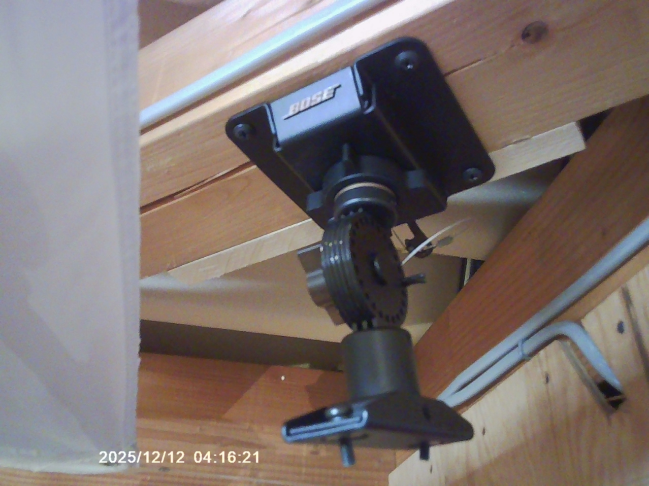 さてこれで左スピーカー本体がその後ろに見えるポスターパネルに接触していたために、ブラケットの固定位置を変更して設置し直して作業が完了しました。