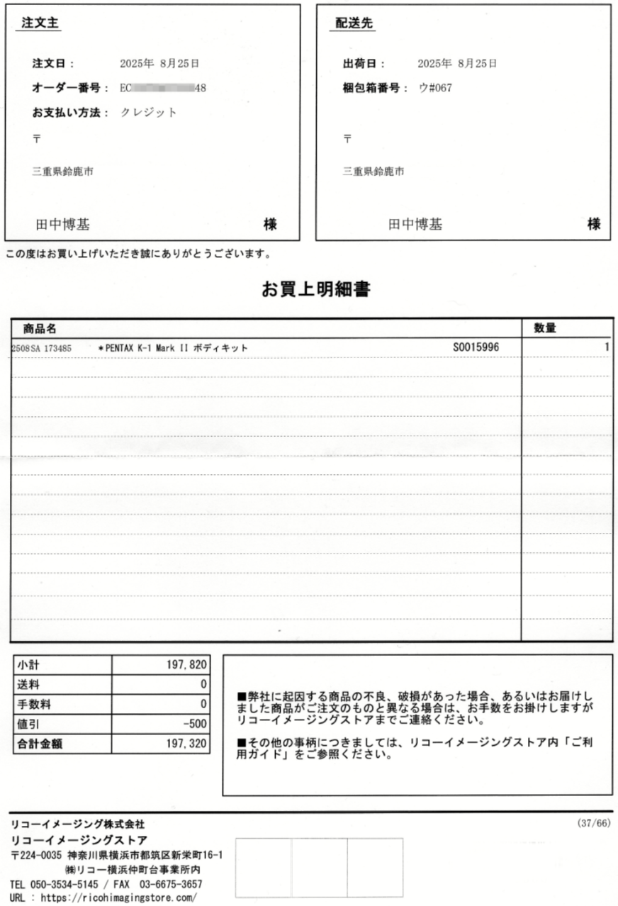 そしてこれも既に上に掲載しているSITE PAGEのスクショでご覧の通り、どうせ買うなら本家のネットショップ リコーイメージングストアで購入しようと決めました。