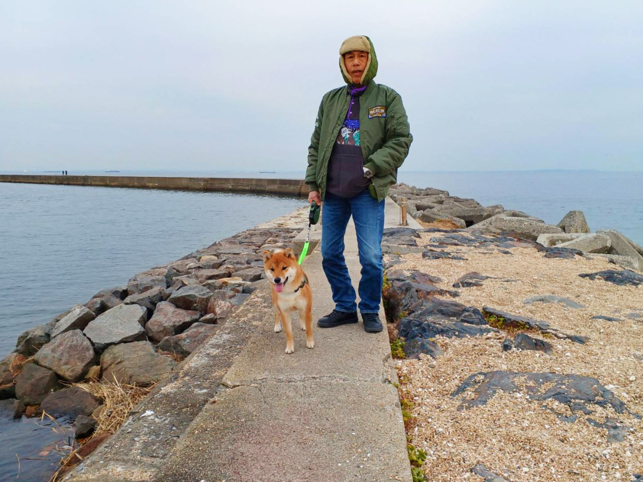 先代太郎が我が家に来て間もない頃に、散歩に慣れさせるためと称して、無理矢理この千代崎海岸まで歩かせたこともありました。
