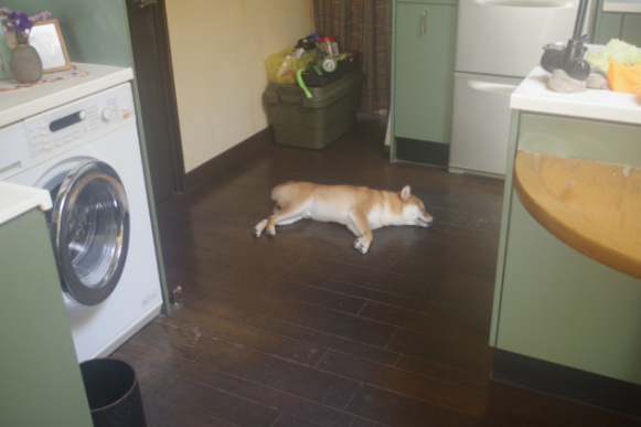 特に夏場はフローリング床のこの場所が太🐾郎の暑さ対策にはうってつけでした。