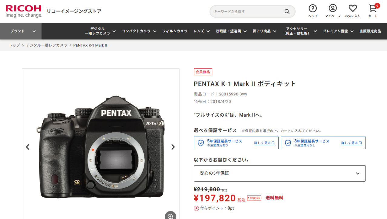 PENTAXのフラッグシップモデル K-1 Mark Ⅱです。
