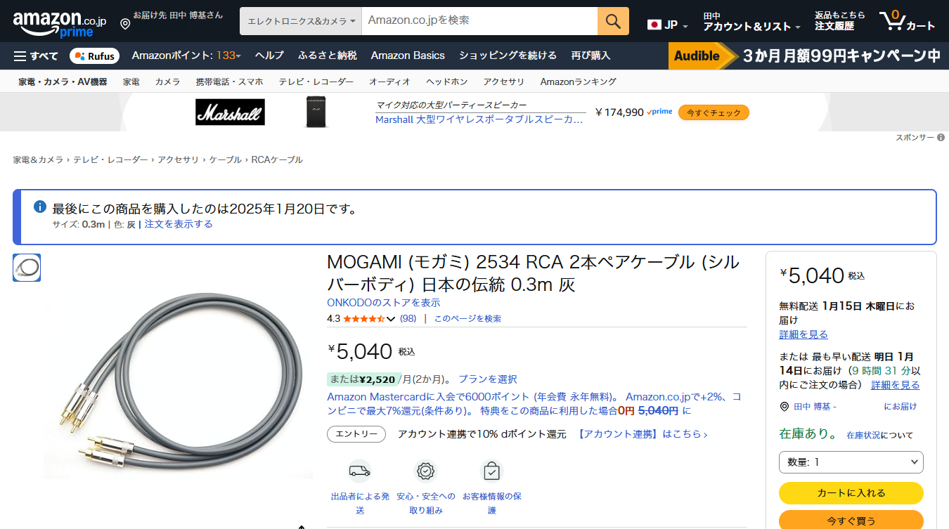 RCA出力端子をRCAケーブルで接続し、インターネット ストリーム ミュージック 配信サービスされた音楽を、晴れて久々に