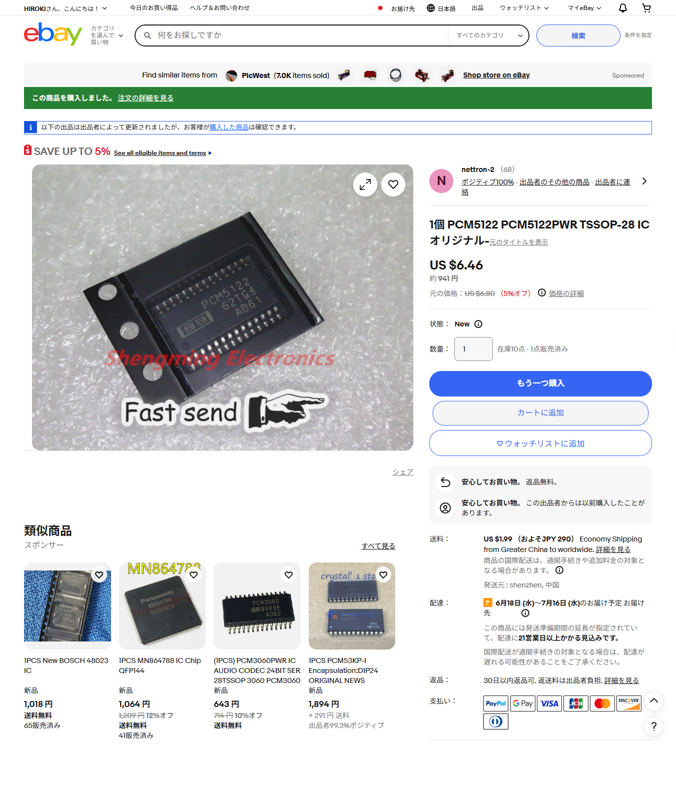 eBay USA のスクショは、この日に購入した