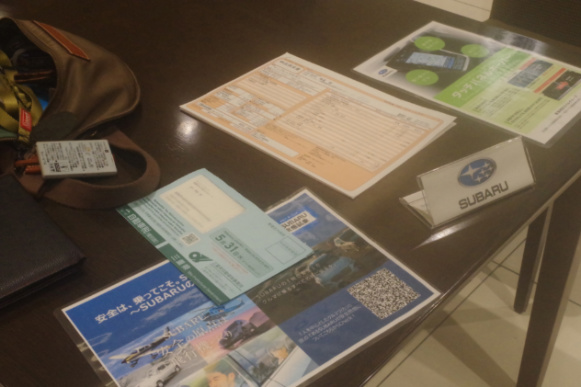 車検から約一週間後、本日はフロントシールドに貼る車検標章と車検証を引き取りにここ三重スバル四日市店を午後4時半頃に訪れました。