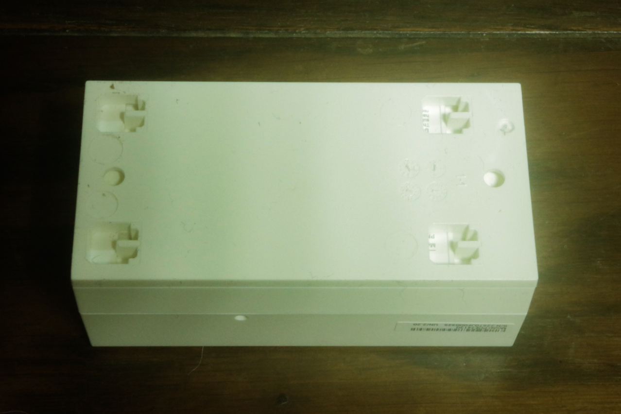 このTP‑LinkTL-POE2412G(UN) 24V Passive PoE AdapterもまたTP‑Link EAP110 Access Pointと同様に本体と台座パネルが一体式になっていて、まず先に樹脂製の台座だけ壁等にネジで固定してから、本体を台座のフックに引っ掛けて固定するようになっていました。