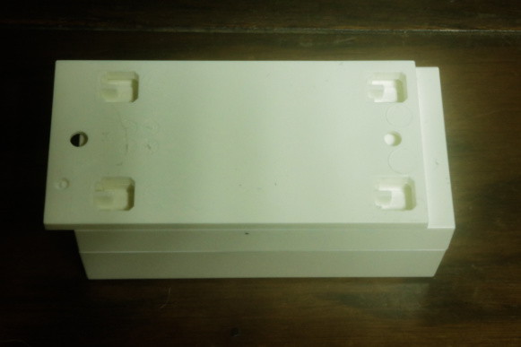 3箇所に爪のような造形が確認出来ますが、これを壁に固定した台座パネルの3箇所の窪みに嵌め込んで、時計回りに本体をズラせばピタリと台座に固定される(台座と一体になる)構造になっています。