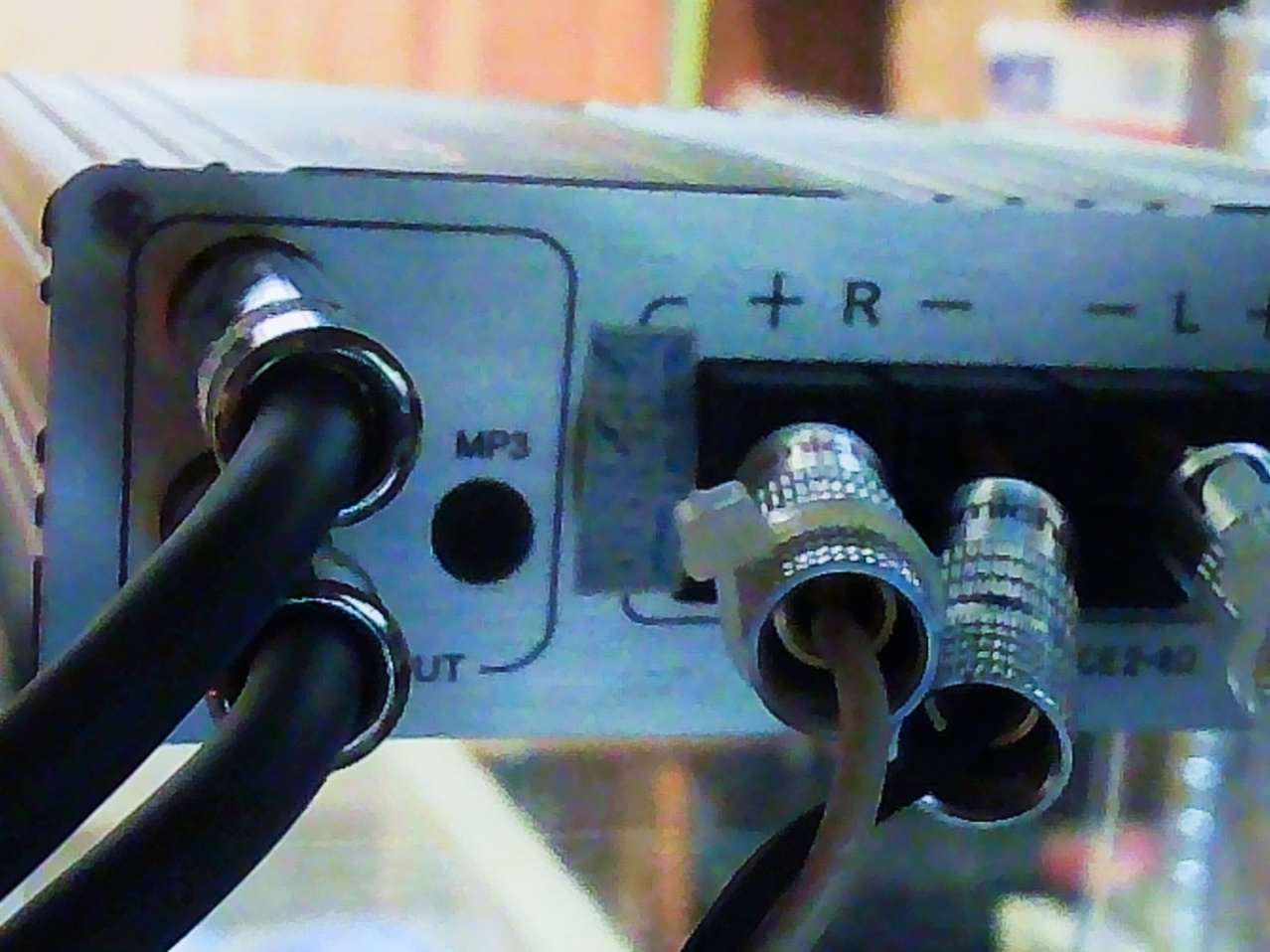 そしてこれはパワーアンプ交換後のLepai LP-2020A+ NFJ Edition Lot.6の背面ですが、例のNakamichi?製バネ式端子用スピーカーケーブルプラグのカバーに、+-接触防止用のインシュロックが着けられています。