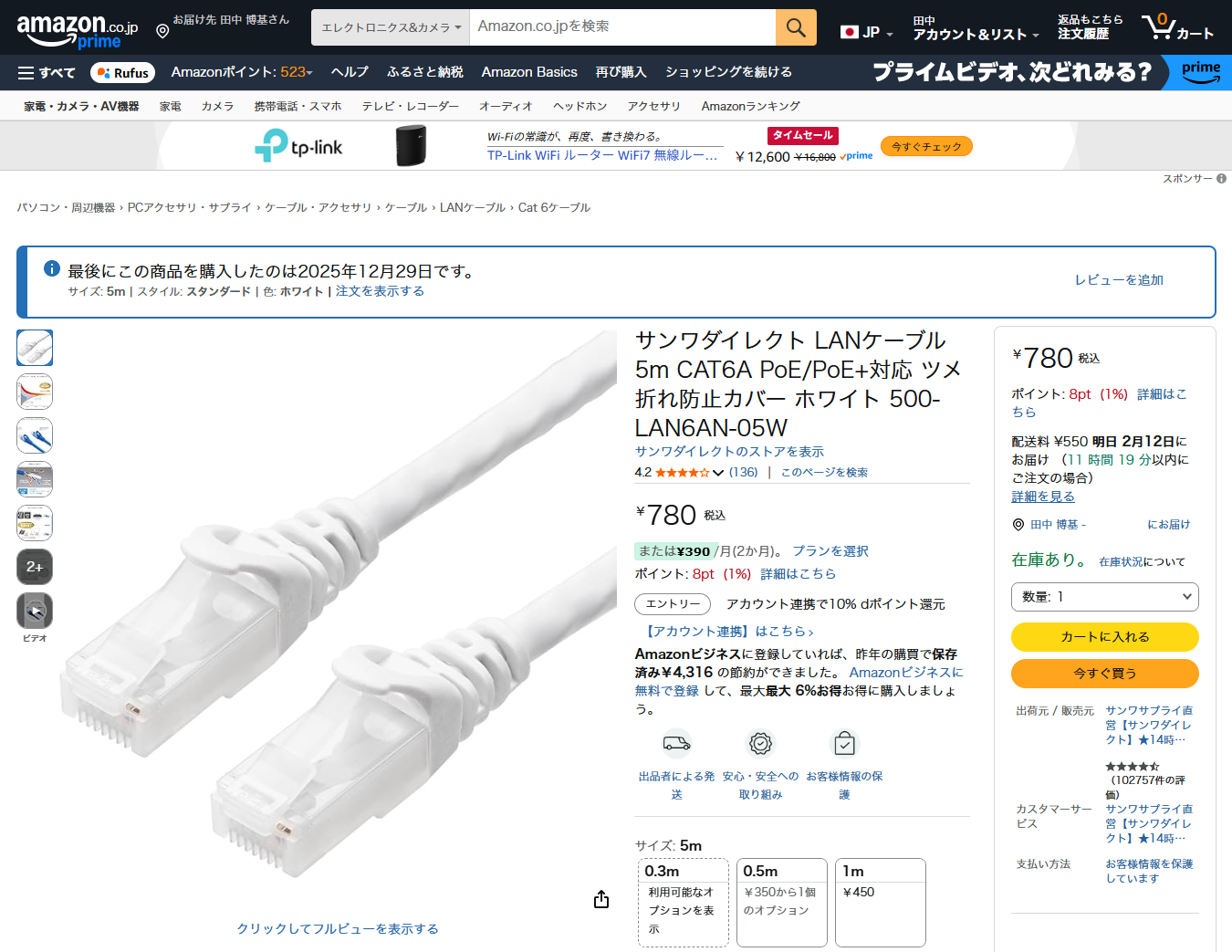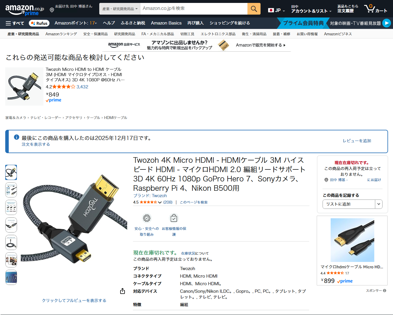 それがこの日にAmazonで購入したこのケーブルです。