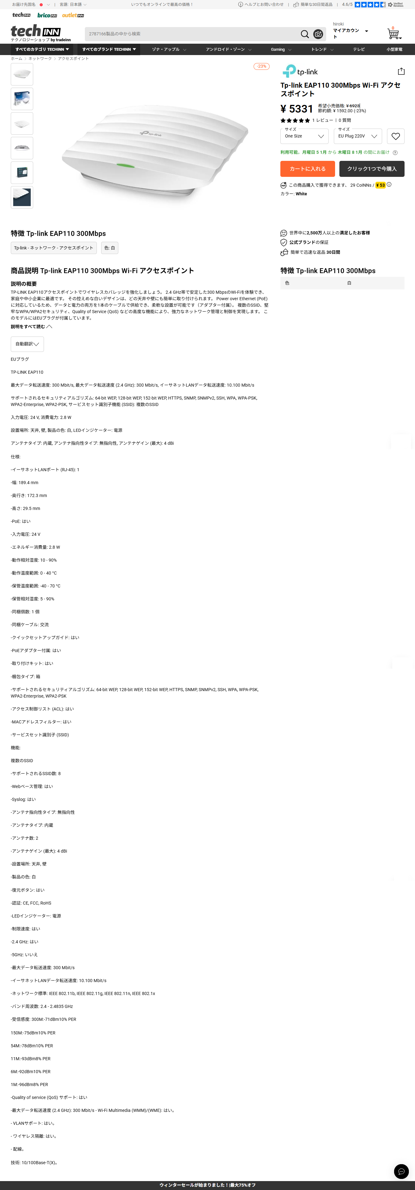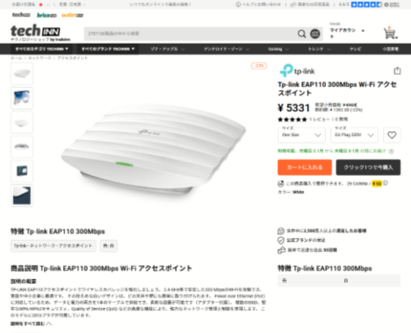 TP‑Link EAP110 Access Pointとは異なり、これはYahoo!Shopで購入出来ました。