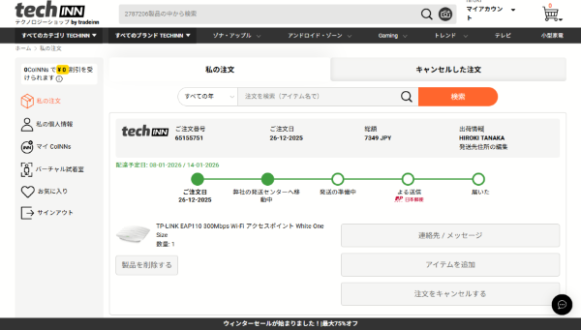 結局年末年始の期間を跨いだためか、国内の発送にもかかわらず到着までこんなに日数が掛かってしまいました。